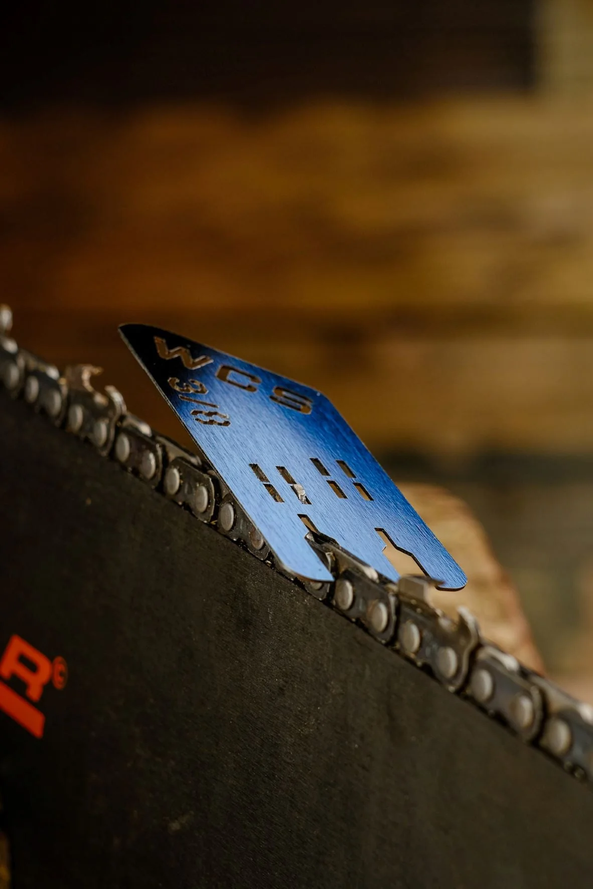 Le gabarit de profondeur (depth plate) Westcoast Saw est conçu pour régler la hauteur des limiteurs de profondeur (rakers) sur les chaînes à gouges pleines (full-comp), semi-skip et full-skip. Fabriqué en acier à haute teneur en carbone durable, ce gabarit offre des options de profondeur précises, commençant à 0,025 pouce (0,64 mm) et diminuant par incréments de 0,010 pouce (0,25 mm). Son bord spécialement conçu, marqué du logo WCS, permet également de nettoyer le rail du guide pour plus de facilité lors de l’entretien.