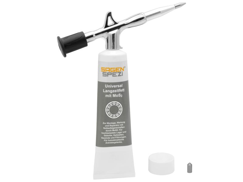 La presse fonctionne de manière précise et propre. Un tube compatible de 100 g de graisse universelle longue durée SÄGENSPEZI® avec MoS2 est inclus dans la livraison.